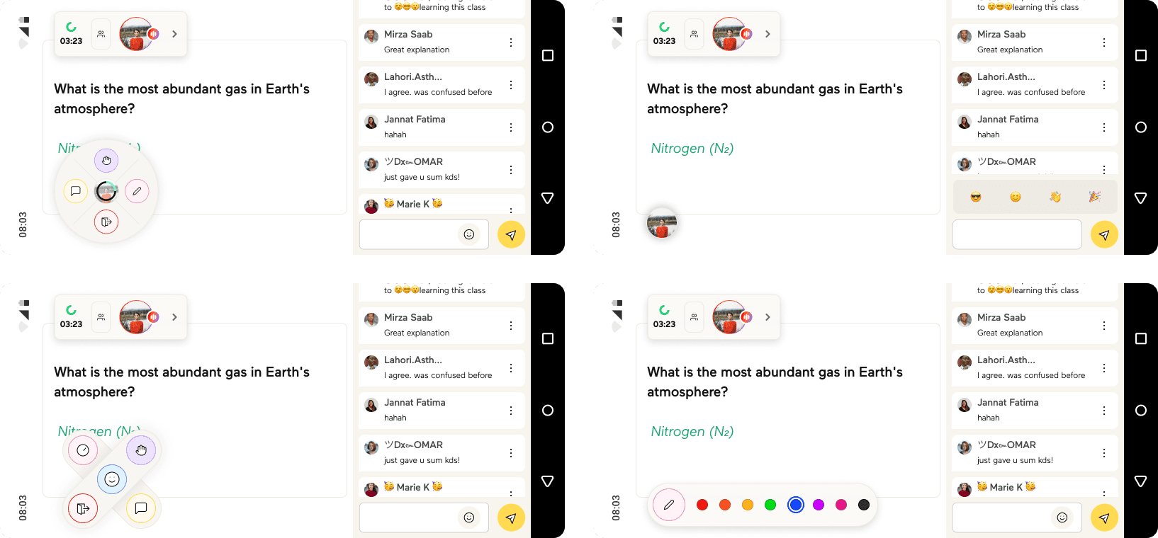 The final designs highlight the integration of elements, improving user experience for live classes.