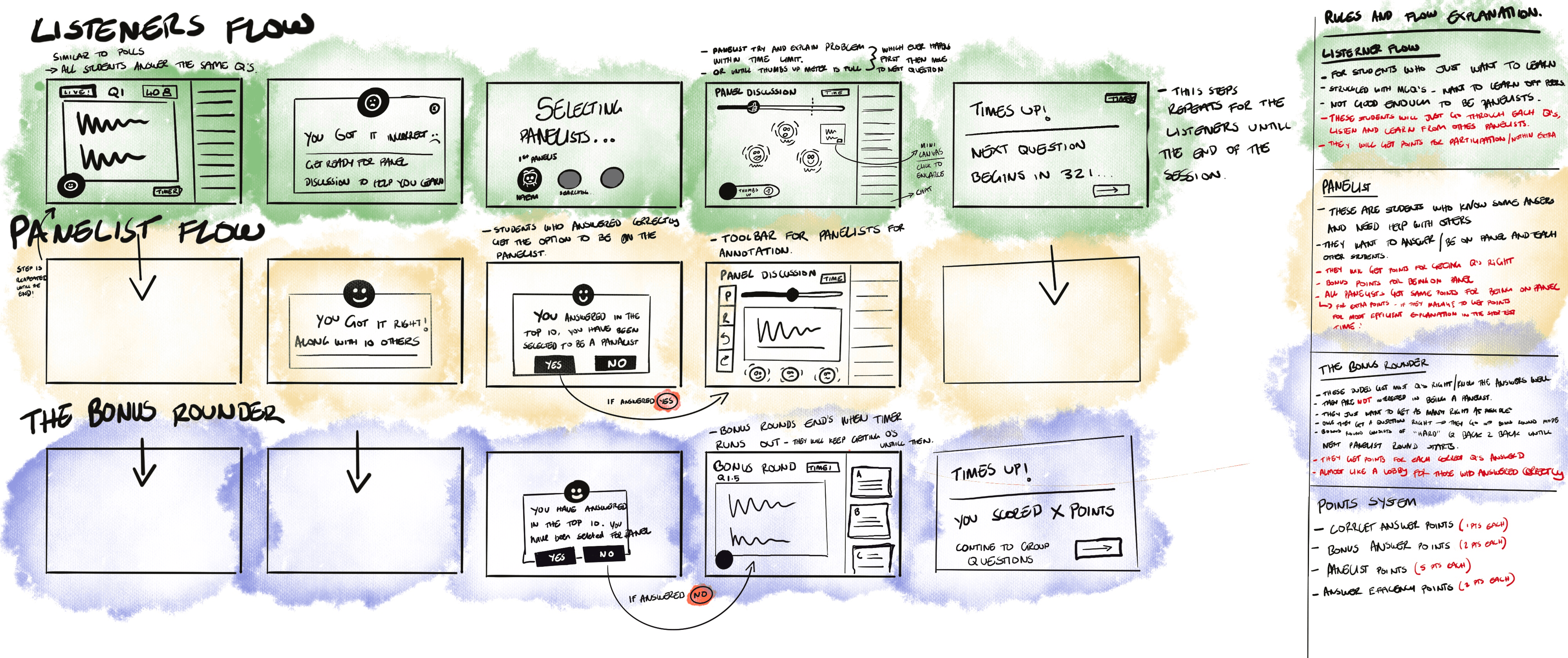 Navigating the challenge of balancing engagement with simplicity, I led the team in pivoting from the complex digital flashcards concept to a more intuitive, discussion-based model